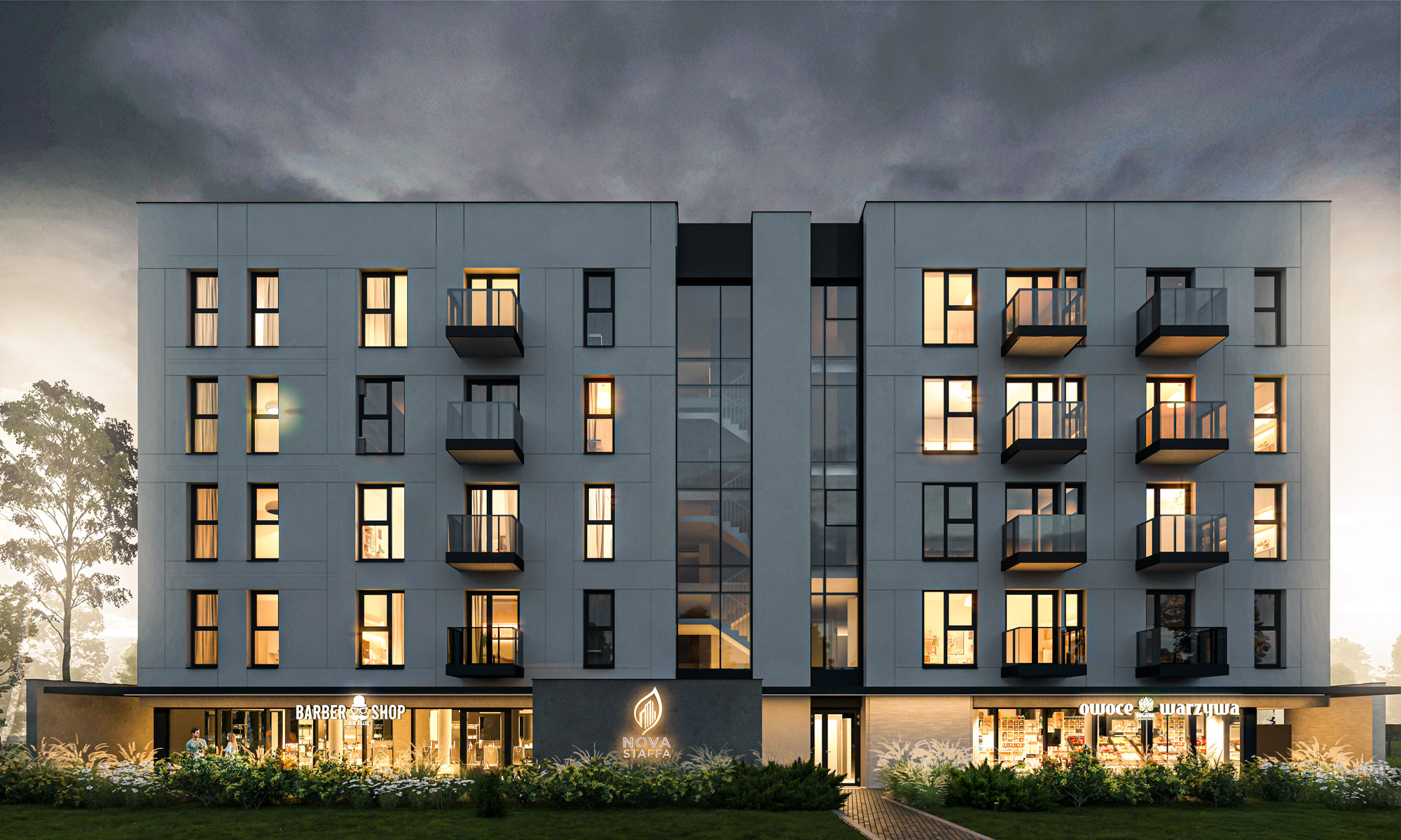 Nova Staffa łączy zalety sąsiedztwa Lasu Krogulec z wygodą miasta. Elegancka, współczesna architektura, loggie oraz balkony przy każdym mieszkaniu, zielone dachy nad garażami i dopracowane części wspólne tworzą spójną całość. O komfort dbają windy w każdej klatce, hala garażowa w parterze oraz możliwość ładowania samochodów elektrycznych. Dla dzieci zaplanowano plac zabaw w otoczeniu zieleni.